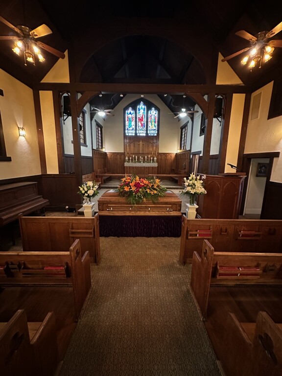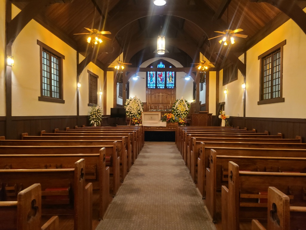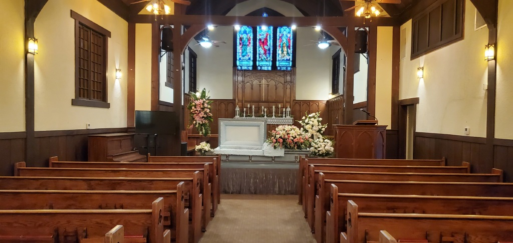 (Parking in front of the chapel is reserved for immediate family and drop-off for those who require assistance)